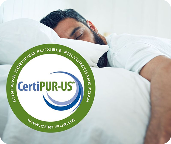 It means all of our polyurethane foams in the bedding or upholstered furniture has been tested to meet CertiPUR-US rigorous standards for emissions, content, performance, and durability. They are made without ozone-depleting chemicals and phthalates regulated by the Consumer Product Safety Commission. The foams have been tested for low VOC (Volatile Organic Compound) emissions for indoor air quality (less than 0.5 parts per million).